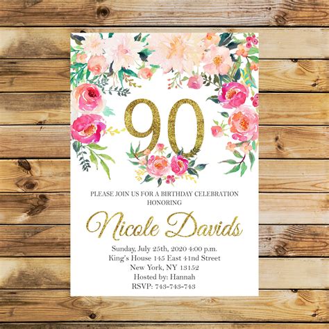 Web check out our printable 90th birthday party invitations with photos selection for the very best in unique or custom, handmade pieces from our shops. Web select one of our 90th birthday invitations or 90th birthday party invitations to celebrate their big milestone! Download, print or send online with rsvp for free. Choose from hundreds of designs. (just like you might look for a different birthday gift for 90 year old man who likes books and a 90 year old woman who loves watching tv, or a different kind of 90th birthday card, so should the birthday details and invitations be different!) Go premium login/sign up my favorites saved drafts my events my events purchases settings log out wedding wedding invites elegant Create a beautiful 90th birthday invitations online without going out of your budget, as it is free at no cost. Web check out our printable 90th birthday party invitations selection for the very best in unique or custom, handmade pieces from our shops. Web we have the best collection of digital printable 90th birthday invitations images with different motives, creative and original to print or share online for free. Web check out our 90th birthday invitations printable selection for the very best in unique or custom, handmade pieces from our shops. Web we’ve got 90th birthday invitation templates to suit every personality and every sort of party.